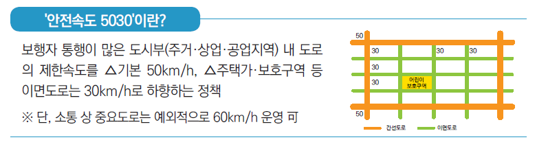 #안전속도 5030 정책을 전국적으로 시행합니다.(시행 2021년 4월)