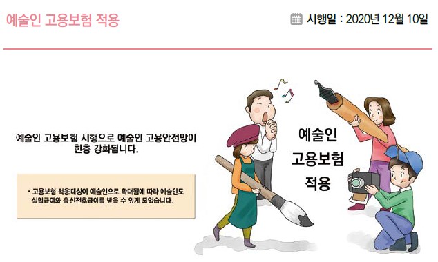 고용보험 가입확대를 위해 '소규모 사업 저소득 예술인의 고용보험료 지원'이 신설됩니다.
